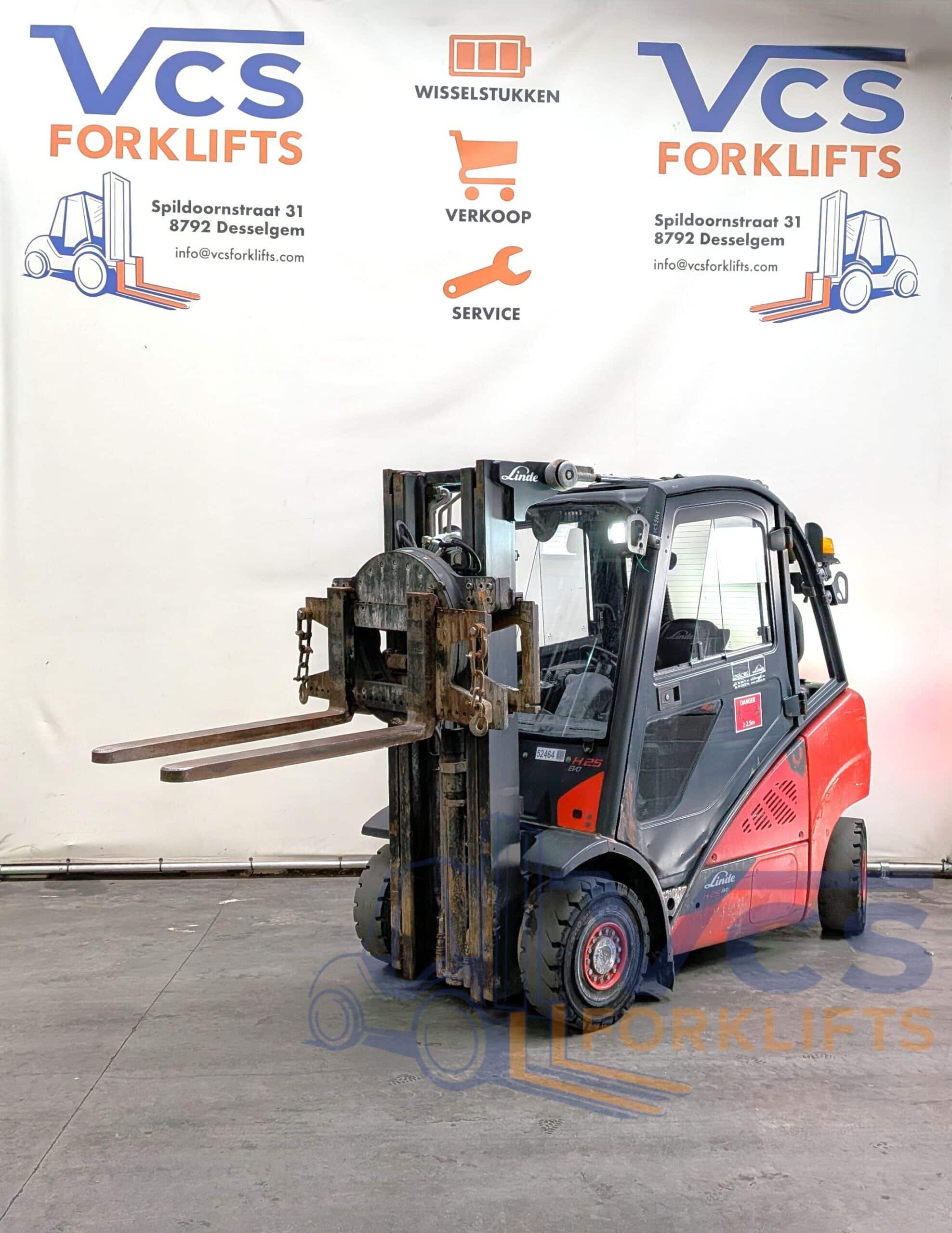 De Linde H25D-02 beschikt over een hefvermogen van 2.500 kg en is uitgerust met een rotator met klem, waardoor hij ideaal is voor het hanteren van rollen, balen en andere specifieke ladingen. De gesloten cabine zorgt voor extra comfort en bescherming voor de bestuurder, terwijl de moderne EVO-uitvoering garant staat voor efficiënte en nauwkeurige bediening.